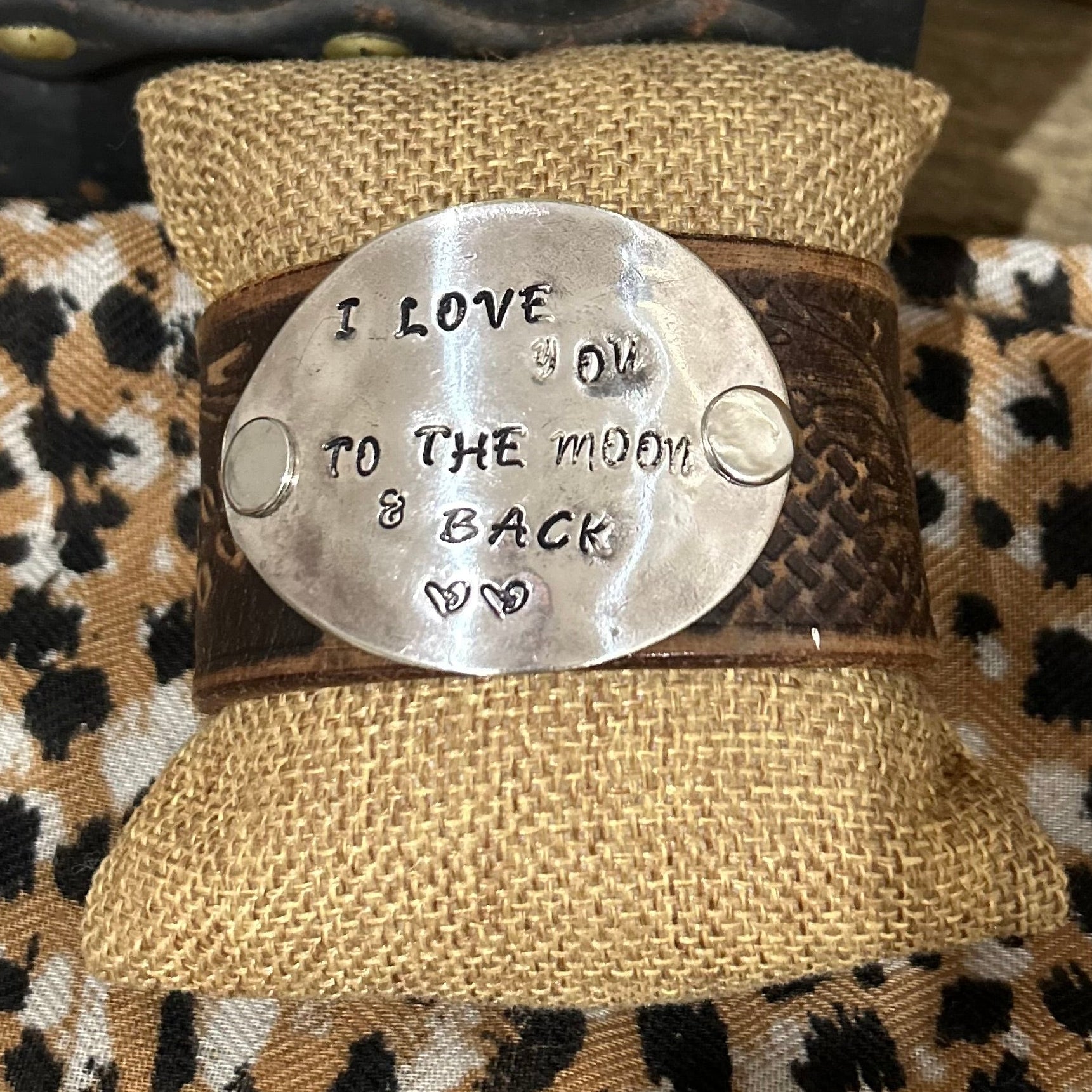 Brown Leather “Moon & Back” Spoon Bowl Cuff